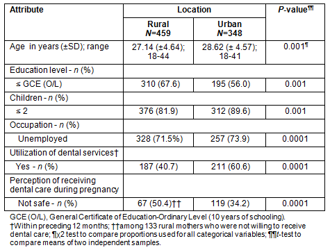 Table 2: Burden of oral disease among urban and rural antenatal women