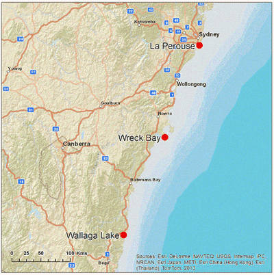 Lack of water fluoridation and a large Aboriginal population are key caries risk factors, which are likely to be different in rural and remote communities than in the wider Australian population. Therefore, community selection criteria aimed to recruit adequate numbers of Aboriginal people and unfluoridated communities for meaningful comparisons. Further, selecting communities in similar geographic circumstances was regarded as beneficial for the purposes of comparison. Therefore, all three recognised Aboriginal communities located on the coast south of state capital Sydney were identified. The communities were Wreck Bay, La Perouse and Wallaga Lake. The locations of the three communities are shown (Fig1).