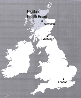The Scottish Highlands was self-selected for the study because the survey was commissioned by the Highland Primary Care Trust, the administrative organisation for primary healthcare in the north of Scotland at the time of this study. The Highlands makes up one-third of Scotland's land area (9800 square miles) and has just 4% of the country's population (209 000). Approximately one-quarter of the population (42 000) live in Inverness. The area is ideal for investigating the rural workforce due to its population sparsity and the inclusion of small towns and Inverness, allowing urban/rural comparisons.