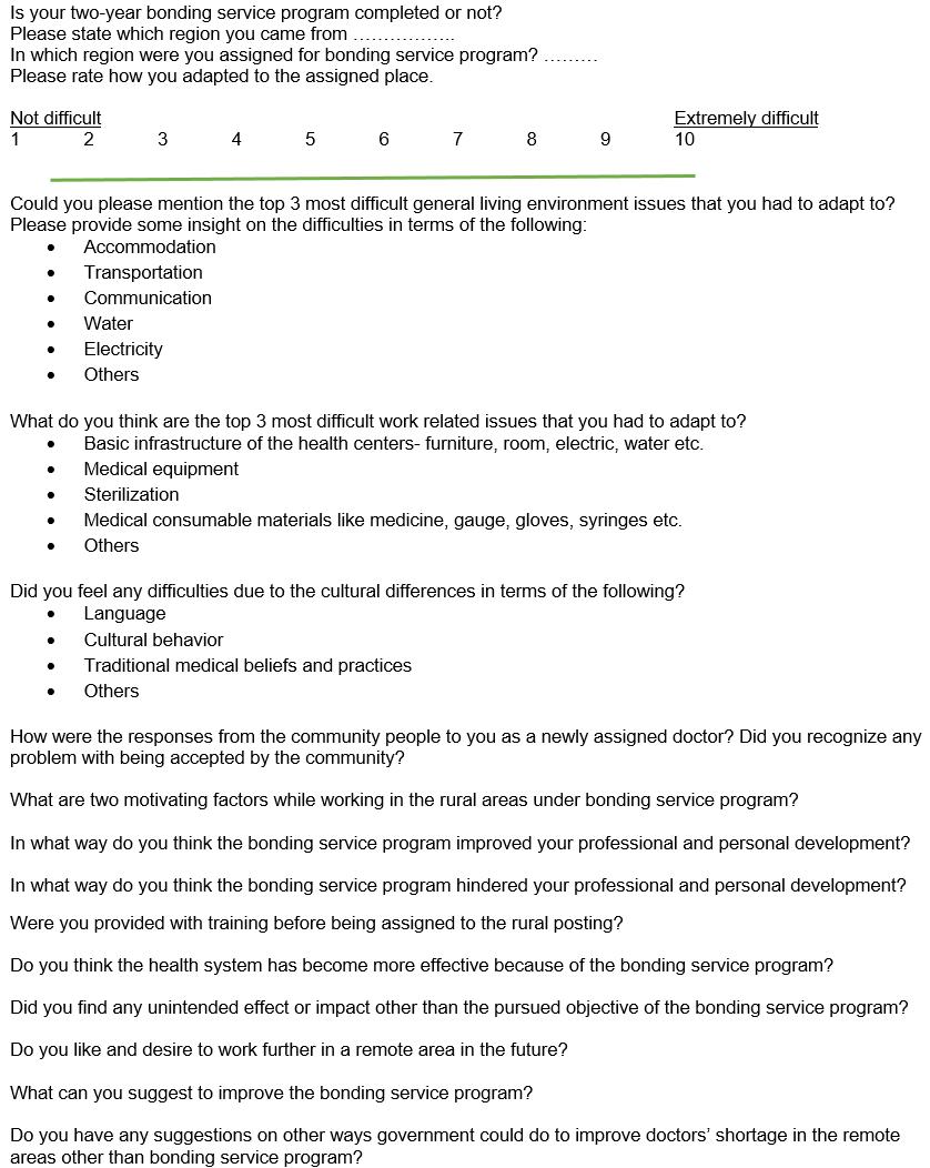 - Understand the challenges faced by the medical graduates working under the bonding service program and identify ways to address those challenges.